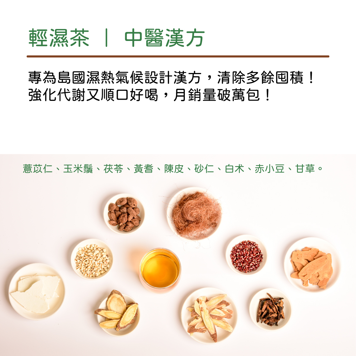 ◆成份:薏苡仁、玉米鬚、茯苓、黃耆、陳皮、砂仁、白术、赤小豆、甘草。