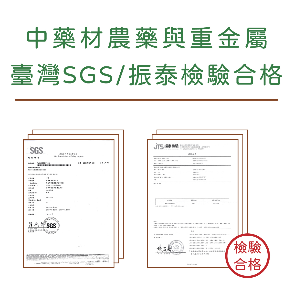 ◆臺灣SGS檢驗中藥材農藥與重金屬合格。