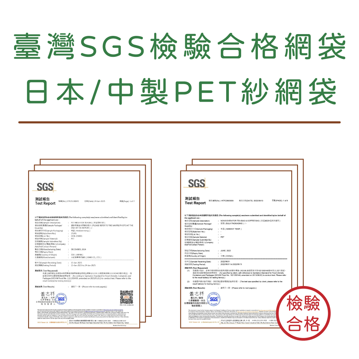 ◆臺灣SGS檢驗PET紗網袋合格。